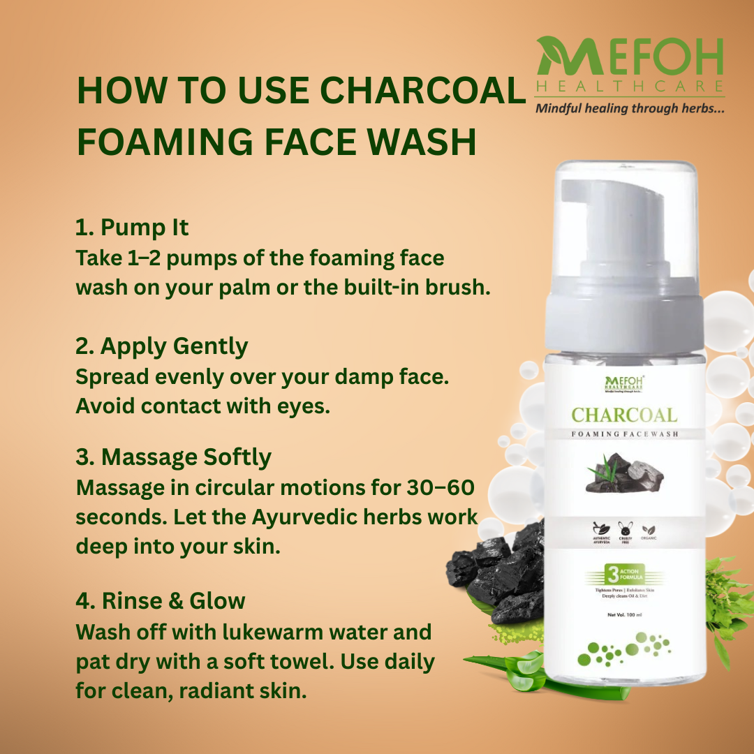 Mefoh Charcoal Foaming Face Wash – Deep Cleansing & Detoxifying Face Wash for Clear, Fresh Skin