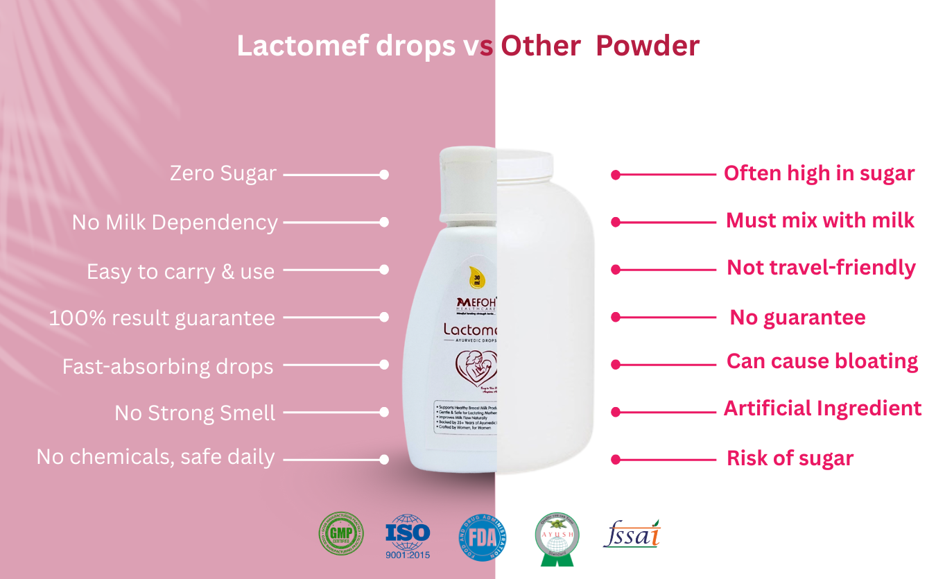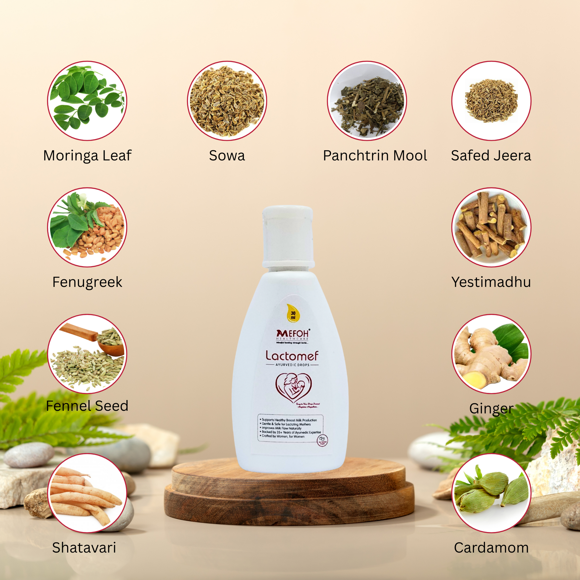 💧 Lactomef Drops (30ml) – A herbal liquid that enhances milk flow, reduces breast engorgement, and supports postnatal recovery with the natural power of Shatavari, Fenugreek, and Saunf.